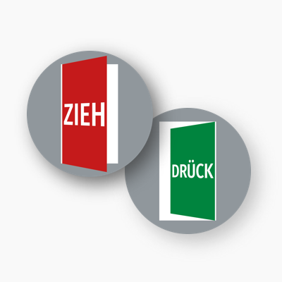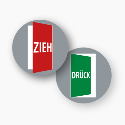 Navigadoor-Schilder sind so unglaublich intuitiv, weil sie die Tür so zeigen, wie sie dein Auge sie sieht – dreidimensional. Da es linke Türen und rechte Türen gibt, gibt es von RONDO auch zwei Varianten: „RONDO links“ und „RONDO rechts“. Das bedeutet: Check vor dem Kauf, ob du eine linke oder rechte Tür hast. Denn du würdest ja auch nicht den rechten Schuh am linken Fuß tragen, oder?